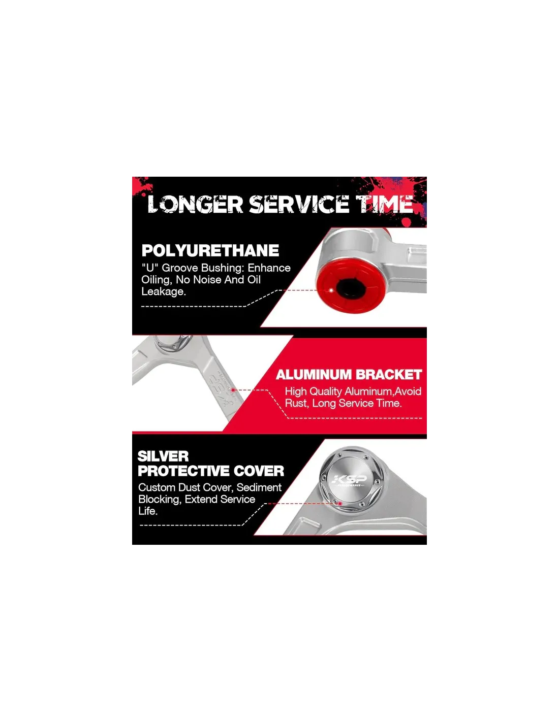 Equipado con guardapolvos para evitar la entrada de barro y arena, alargando la vida útil de las rótulas.