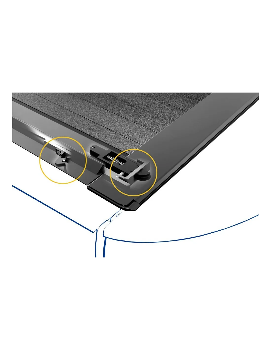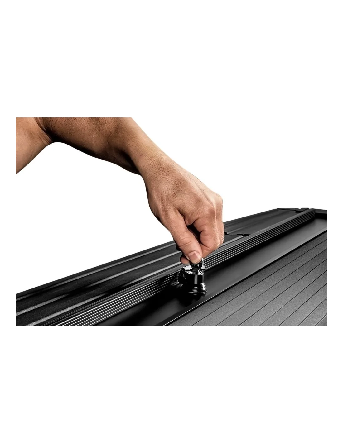 La cubierta retráctil más avanzada para caja de camioneta que se haya fabricado y que ha redefinido las reglas de seguridad en las cajas de camionetas. Desde su función retráctil que permite abrir o cerrar literalmente en segundos, hasta su construcción rígida y laminada de aluminio cubierto de vinilo, esta cubierta híbrida ofrece todo lo que otras cubiertas no ofrecen. No tiene broches que manipular, no hay rollo o bulto que sujetar o guardar, sin barrotes cruzados que sortear, sin batallar con encogimiento de la tela y — lo mejor de todo — sin preocupaciones en cuanto a la seguridad de la carga.