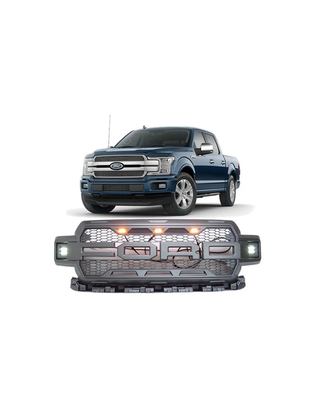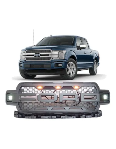MÁSCARA RAPTOR STYLE GRIS FORD F150 2018-2021 C/FOCOS MP
