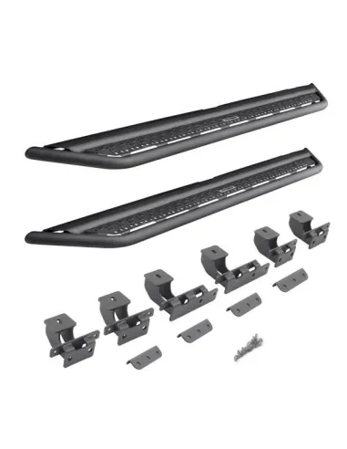 Pisadera de fierro con tratamiento anti-corrosivo. Superficie ancha y ranurada para facilitar acceso a la cabina y permitir la evacuación de barro y nieve. Diseño off-road de bajo perfil tipo Raptor. Sistema de sujeción al chasis diseñado a la medida de cada camioneta. NO se perfora, o modifica estructura OEM. Diseñado en USA y fabricado en México.