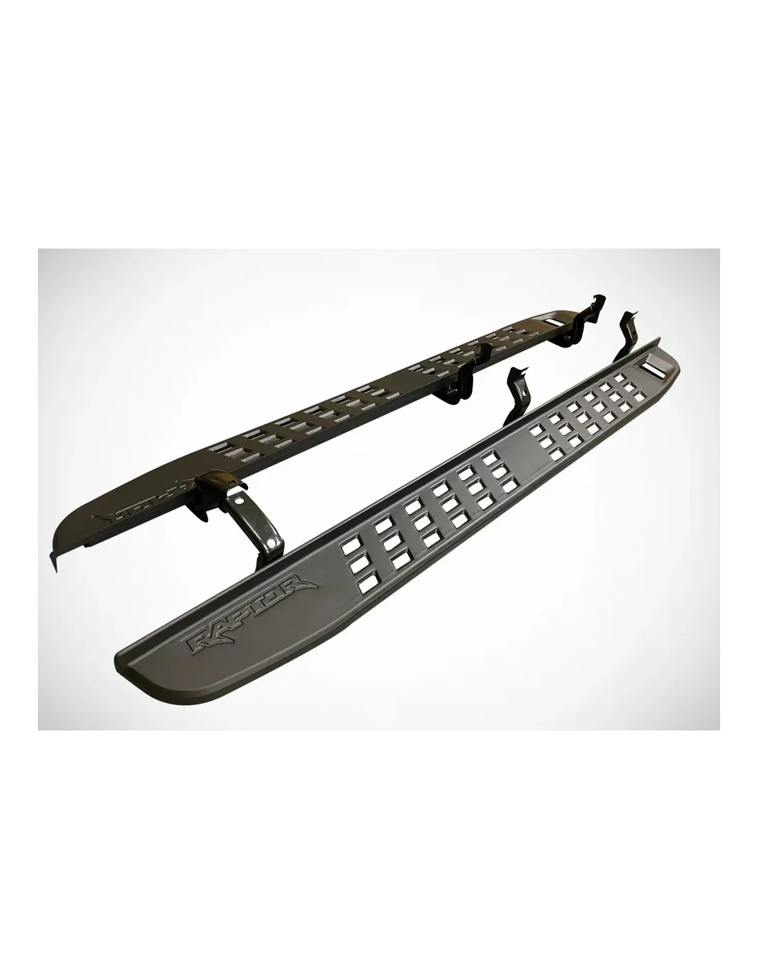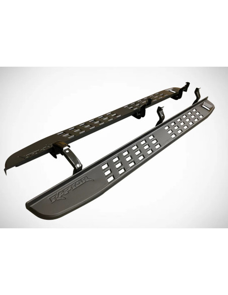 Pisadera de fierro con tratamiento anti-corrosivo. Superficie ancha y ranurada para facilitar acceso a la cabina y permitir la evacuación de barro y nieve. Diseño tipo Raptor. Sistema de sujeción al chasis diseñado a la medida de cada camioneta. NO se perfora, o modifica estructura OEM.