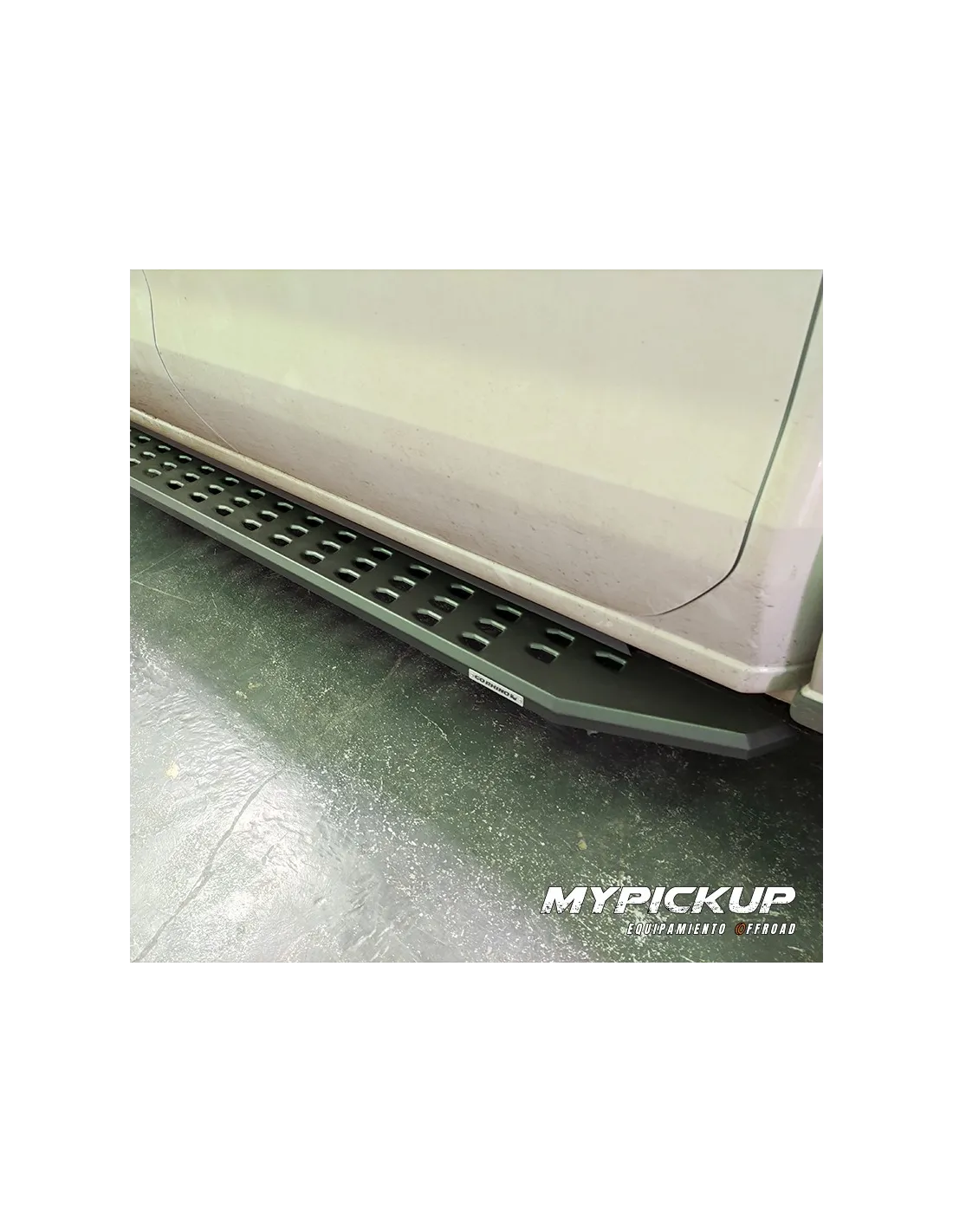 Pisadera de fierro con tratamiento anti-corrosivo. Superficie ancha y ranurada para facilitar acceso a la cabina y permitir la evacuación de barro y nieve. Diseño off-road de bajo perfil tipo Raptor. Sistema de sujeción al chasis diseñado a la medida de cada camioneta. NO se perfora, o modifica estructura OEM. Diseñado en USA y fabricado en México.
