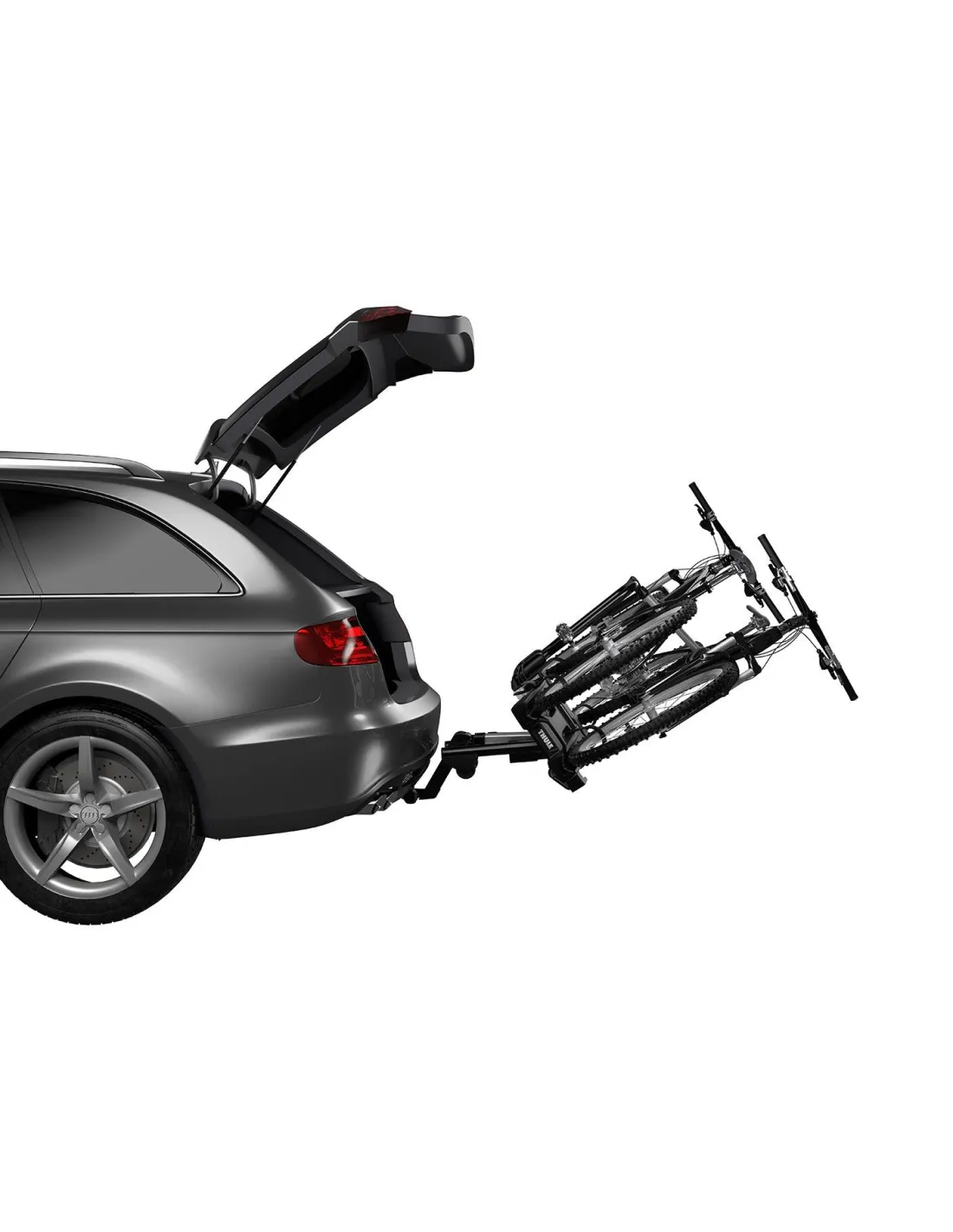 El portabicicletas con barra de remolque Thule EasyFold XT 2 es un portabicicletas montado en barras de remolque completamente plegable, compacto y fácil de usar para una amplia gama de bicicletas y bicicletas eléctricas. Cargar bicicletas pesadas no supone ningún esfuerzo y con la rampa de carga opcional es aún más fácil. Este duradero portabicicletas también permite el acceso total al baúl incluso cuando las bicicletas están cargadas. Pliega el portabicicletas hasta un tamaño compacto y guárdalo en tu baúl, perfecto para una aventura improvisada en bicicleta. Para geometrías de bicicleta poco habituales o cuadros de gran tamaño, lleva tu bicicleta a uno de nuestros distribuidores Thule y pruébalo.