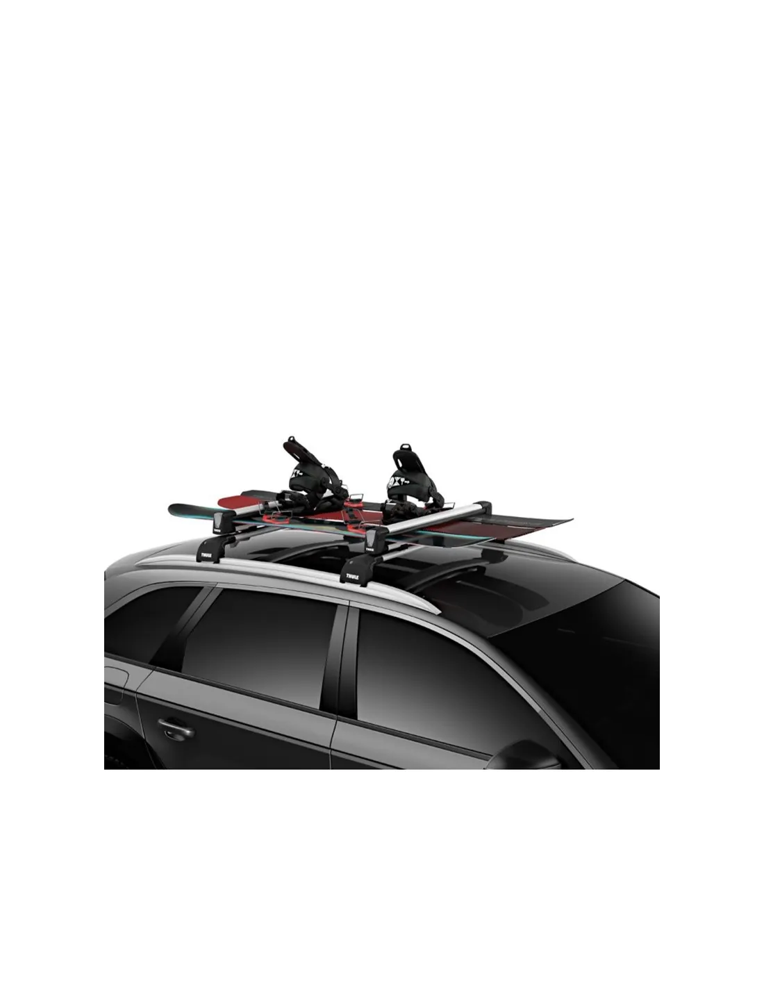 - Transporta de forma segura los modernos esquís y tablas de snowboard de mayor grosor, y reduce la altura del portaesquís cuando está descargado con el sistema de resorte vertical integrado