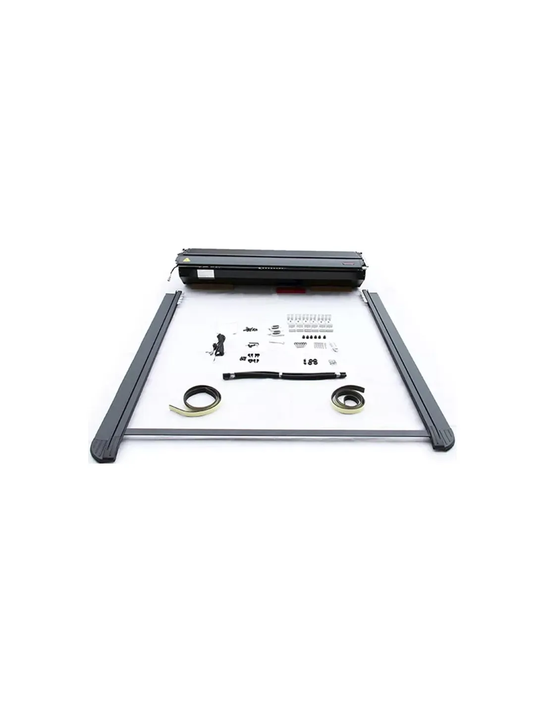 Tapa retráctil de operación eléctrica, paradas parciales fijas. Cubierta de listones de aluminio ULTRA resistente en terminación mate. Incorpora sistema de evacuación aguas lluvias. Rieles laterales ranurados permiten la instalación de bases y barras portaequipajes. Resistente al agua. Fabricado y diseñado en China por KSC Factory - Calidad OEM - Garantía 6 meses en tienda