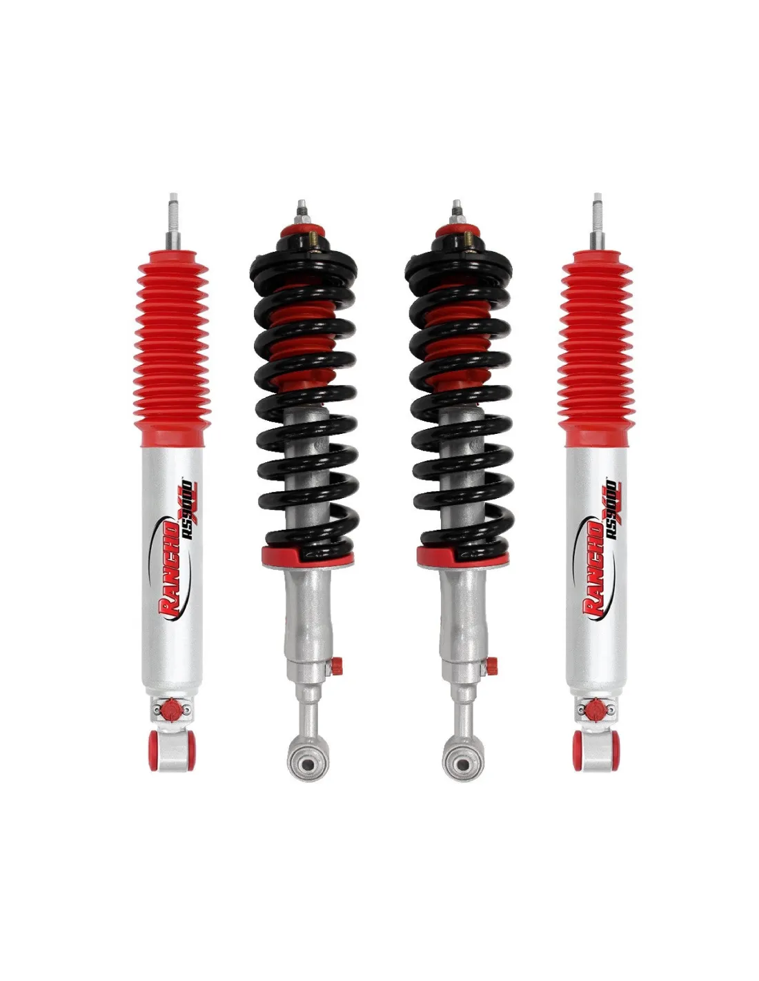 Los Rancho QuickLift levantan 2.5 pulgadas la parte frontal de la camioneta, lo que permite la nivelación y colocación de neumáticos de mayor tamaño y brinda una postura más agresiva sin el costo de una sistema de suspensión completo.