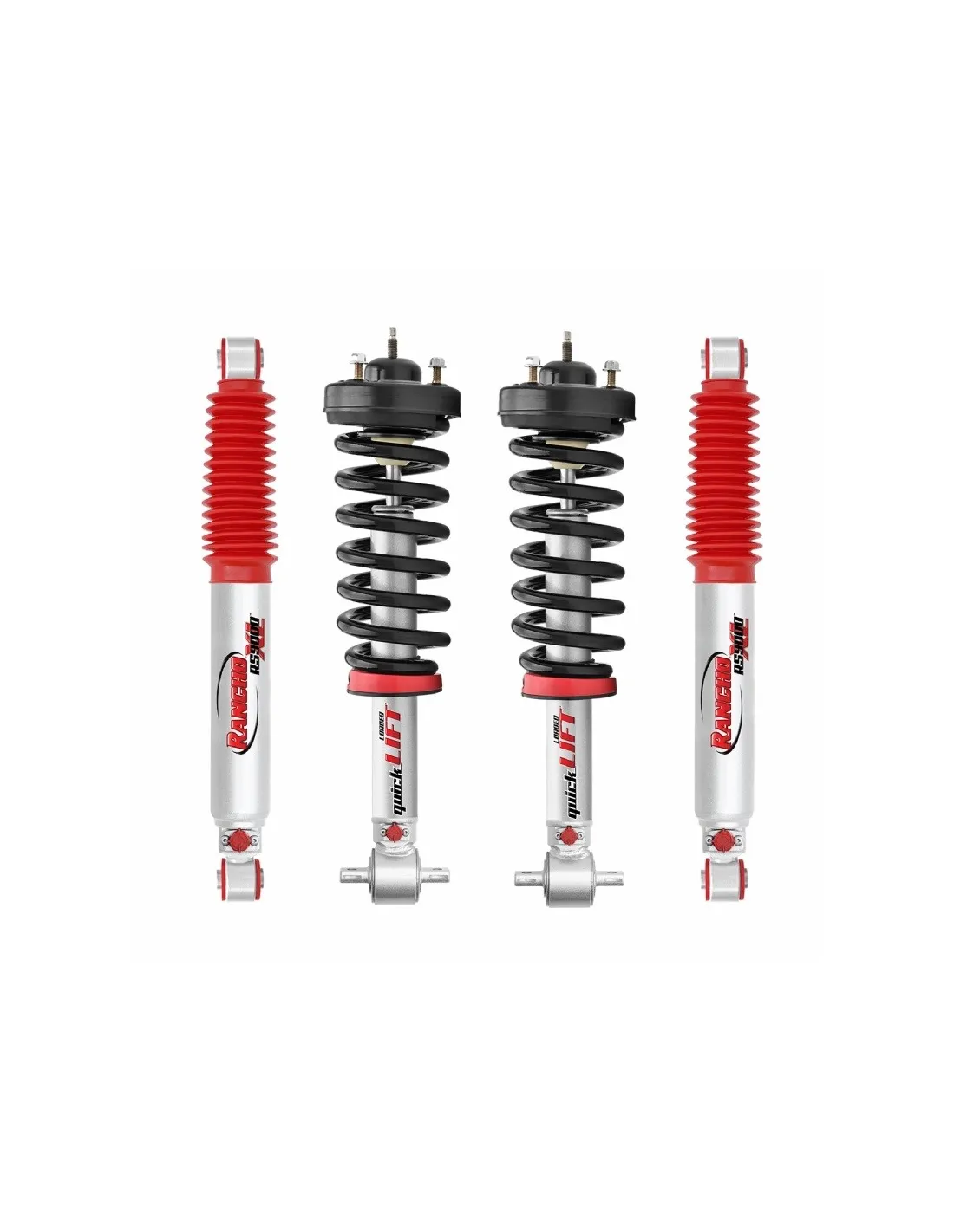 Los Rancho QuickLift levantan 2 pulgadas la parte frontal de la camioneta, lo que permite la nivelación y colocación de neumáticos de mayor tamaño y brinda una postura más agresiva sin el costo de una sistema de suspensión completo.