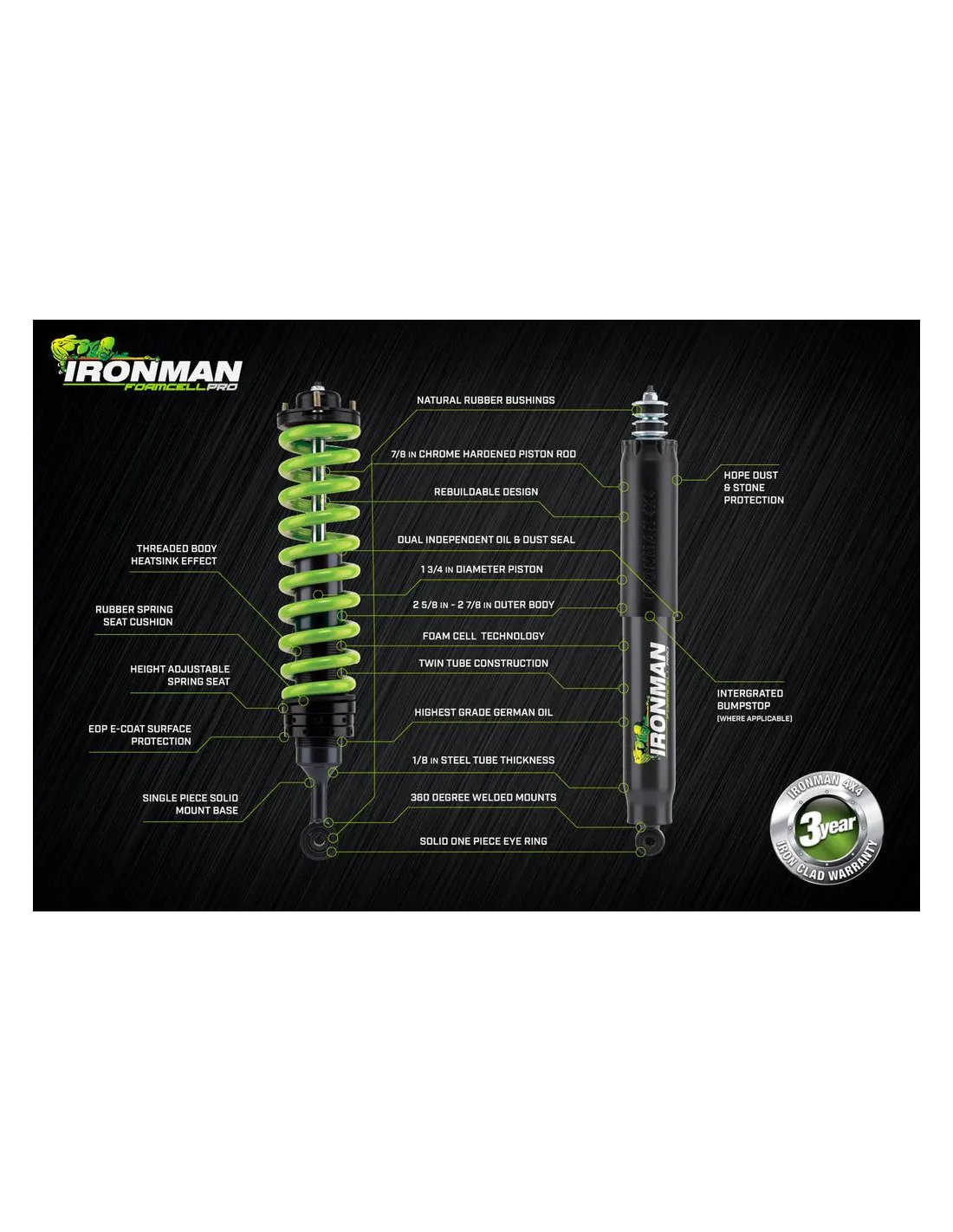 2 amortiguadores delanteros Ironman 4x4 Foamcell Pro