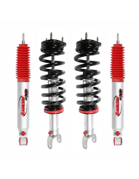Los Rancho QuickLift levantan 2" pulgadas la parte frontal de la camioneta, lo que permite la nivelación y colocación de neumáticos de mayor tamaño y brinda una postura más agresiva sin el costo de una sistema de suspensión completo.