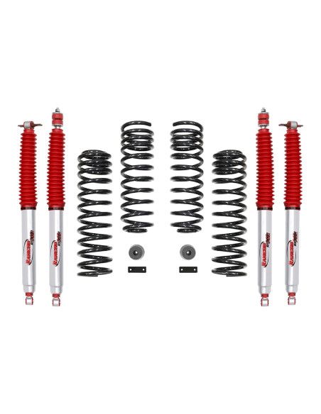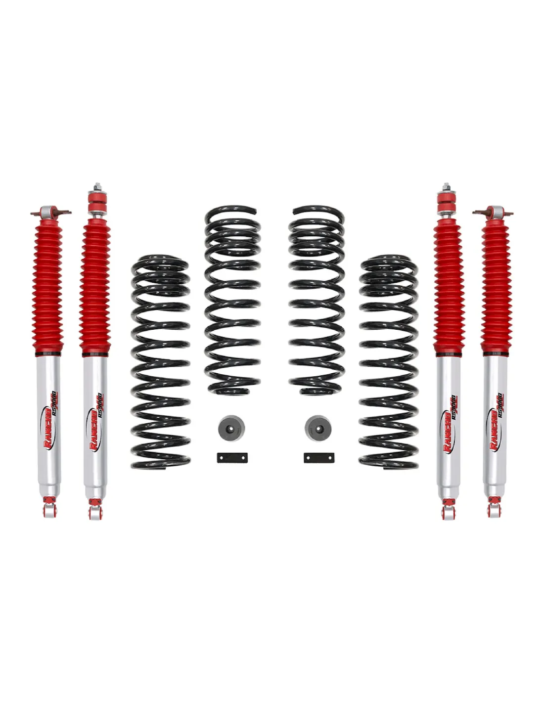 Los Rancho QuickLift levantan 2" pulgadas la parte frontal de la camioneta, lo que permite la nivelación y colocación de neumáticos de mayor tamaño y brinda una postura más agresiva sin el costo de una sistema de suspensión completo.
