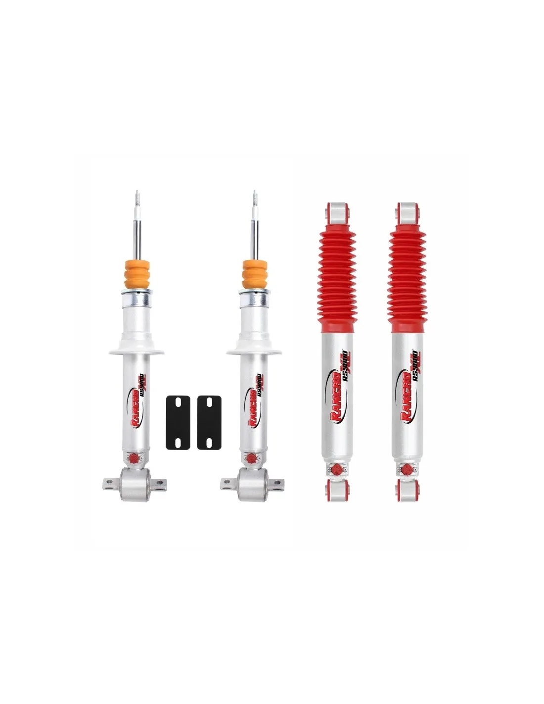 EL KIT "LEVEL IT" RANCHO LEVANTA Y NIVELA LA PARTE DELANTERA 2" DE LA CAMIONETA. ESTE KIT VIENE INCLUIDOS CON AMORTIGUADORES RS9000XL REGULABLES DE 9 POSICIONES RANCHO, 2 ESPACIADORES Y ACCESORIOS DE MONTAJE PARA BRINDAR MAYOR DESEMPEÑO EN CARRETERA Y EN OFF ROAD. EL KIT LEVANTA LA PARTE DELANTERA DE LA CAMIONETA 2 PULGADAS Y PERMITE UTILIZAR LOS NEUMÁTICOS ORIGINALES DEL VEHICULO.