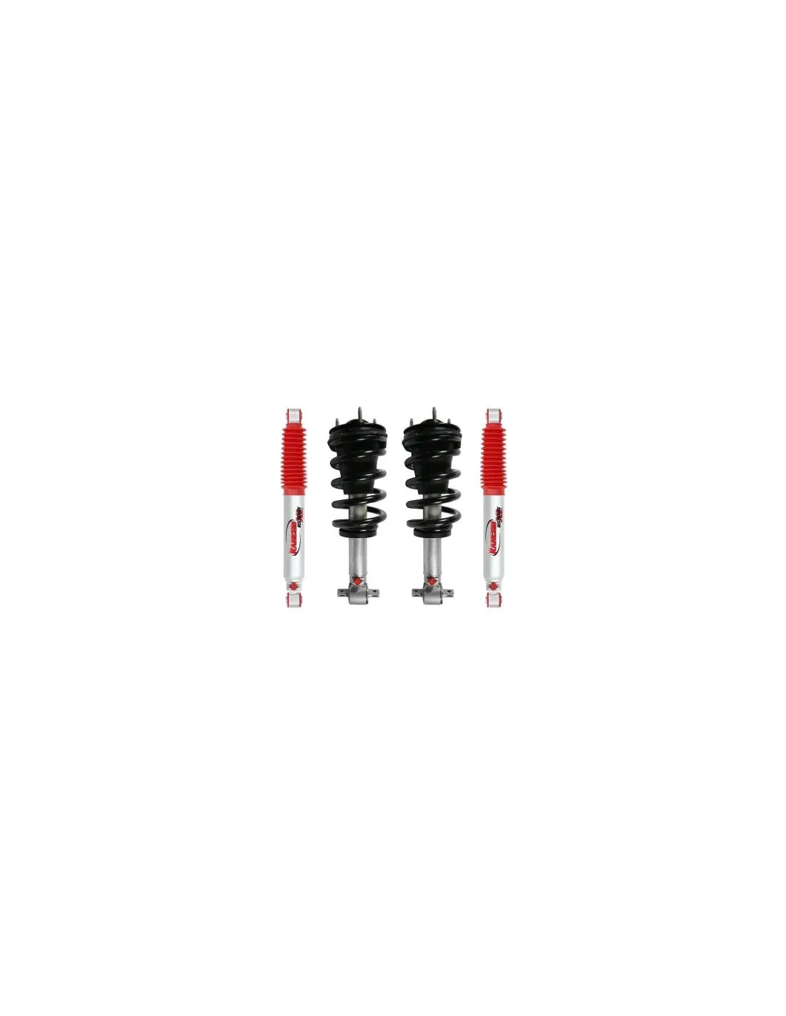 Los Rancho QuickLift levantan 2 pulgadas la parte frontal de la camioneta, lo que permite la nivelación y colocación de neumáticos de mayor tamaño y brinda una postura más agresiva sin el costo de una sistema de suspensión completo.