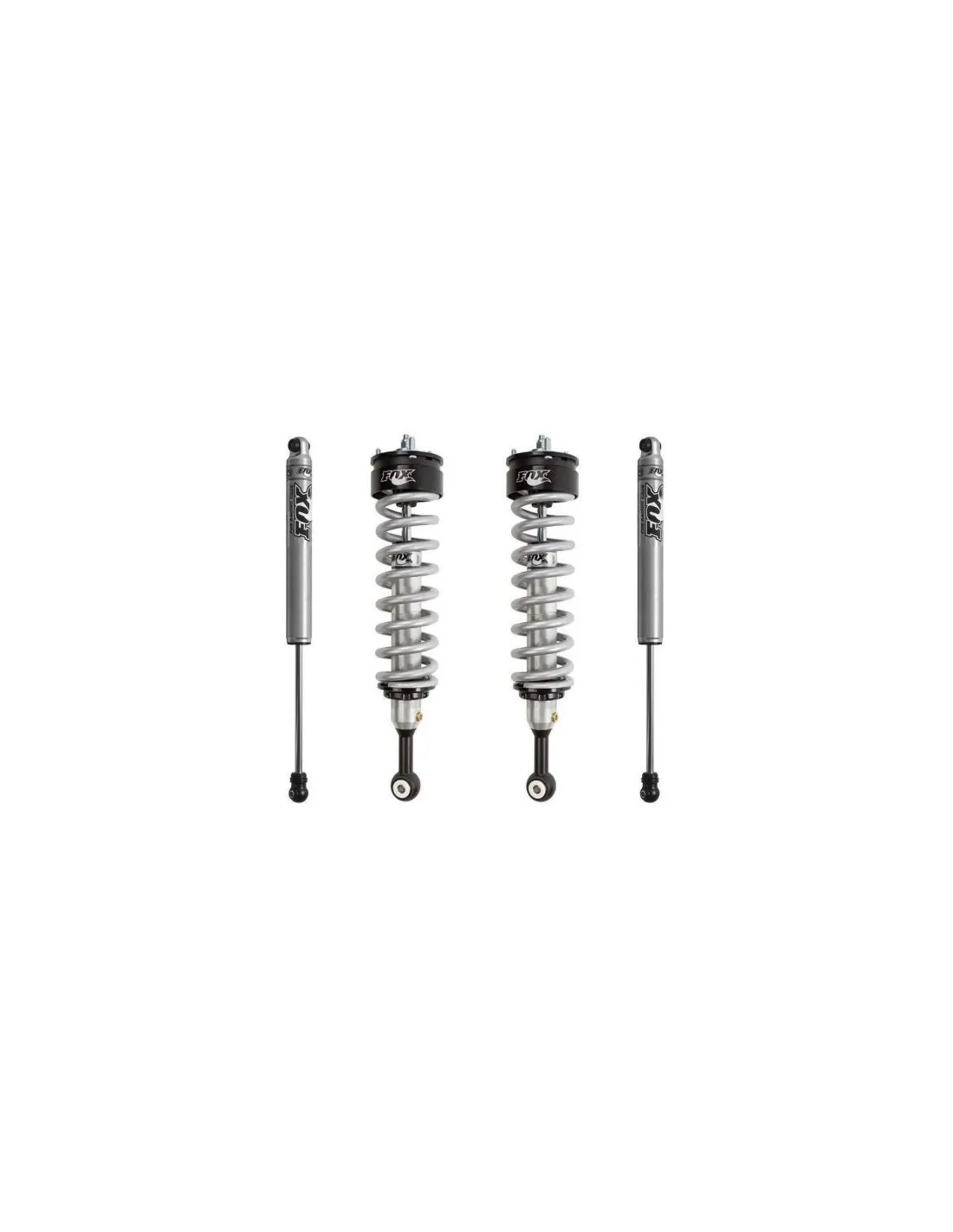 Los coilover delanteros compuestos por amortiguador Fox + espiral Eibach permiten regulación de altura desde 0-2″ dependiendo si quieres levantar o no la parte delantera de la camioneta emparejándola con la parte trasera. Hace el mismo trabajo que un “Leveling” con el beneficio de además mejora la suspensión y desempeño de la camioneta dándole mayor recorrido