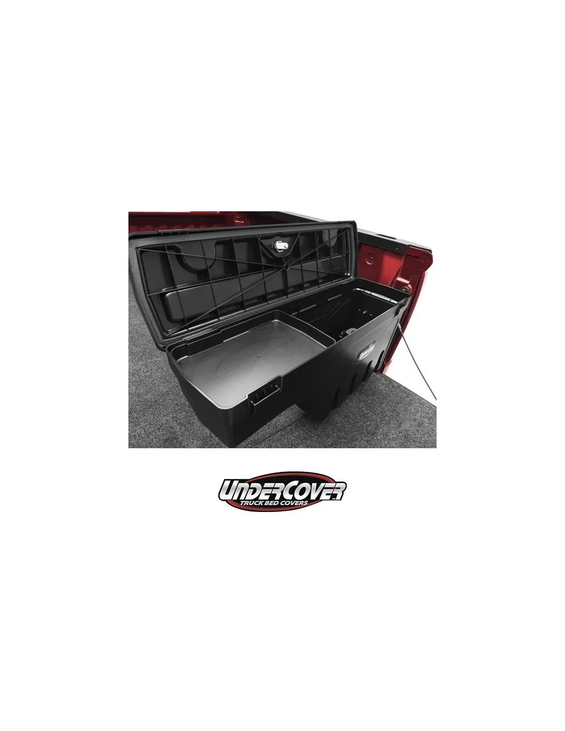 La Swing Case es la caja plástica de pick up más versátil del mercado. Construida para durar con plástico ABS ligero y de alto impacto. La Swing Case es resistente a la intemperie y se ajusta a la medida de su pickup. Incorporar sistema de bisagra para permitir su rotación hacia el portalón, logrando con esto acceso al interior de la caja sin subir a su pick up. El sistema Twist-lock le permite abrir su Swing Case y de ser necesario cerrarla con llave para su seguridad. Se puede retirar o montar sobre el pickup todas las veces que lo requieras, sin herramientas! Montaje: Lado Pasajero