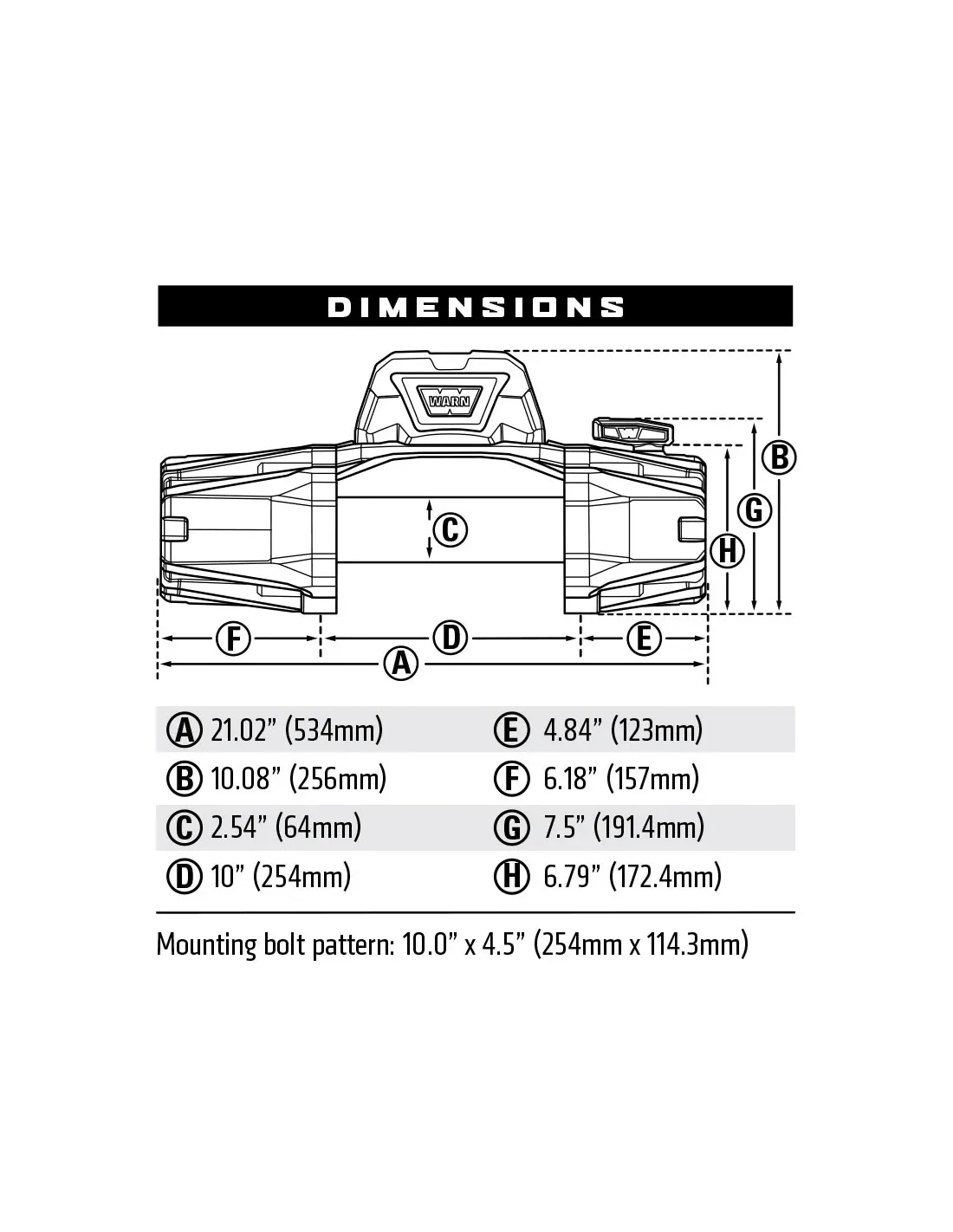 Capacidad de peso y velocidad de línea ideales para camionetas, jeeps y SUV de 1/2 tonelada. El VR EVO 10 cuenta con una construcción impermeable con clasificación IP68, un contactor Albright® ultra confiable dentro de un paquete de control reubicable y un control remoto con cable de 11,5' (3,5 m).